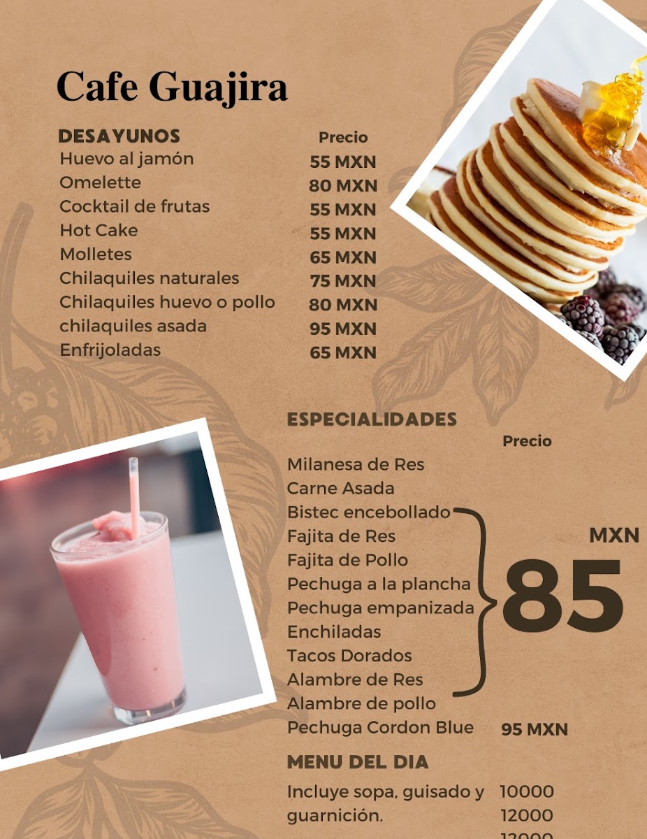 Cafe Guajira excels in offering an array of local cuisine that speaks to the palate of anyone looking for home-cooked flavors. Popular menu items include their signature breakfast combo featuring eggs your way, fresh fruit, and a robust cup of coffee all at an unbeatable price of just 70 pesos! Many guests rave about the huevos con chorizo, which is cooked to perfection, spicy if you desire, and served alongside generous portions of homemade tortillas that make each meal feel like a comforting hug.